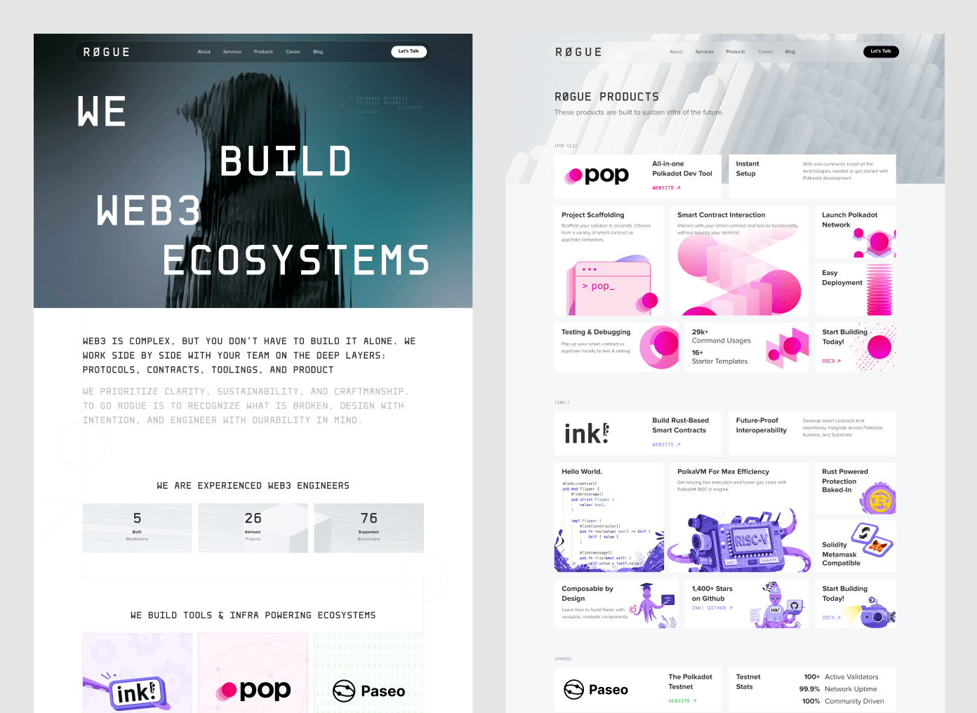The new CMS-backed site reflects R0GUE’s move from an engineering collective to a clear, credible Web3 partner, while staying easy for their team to maintain.